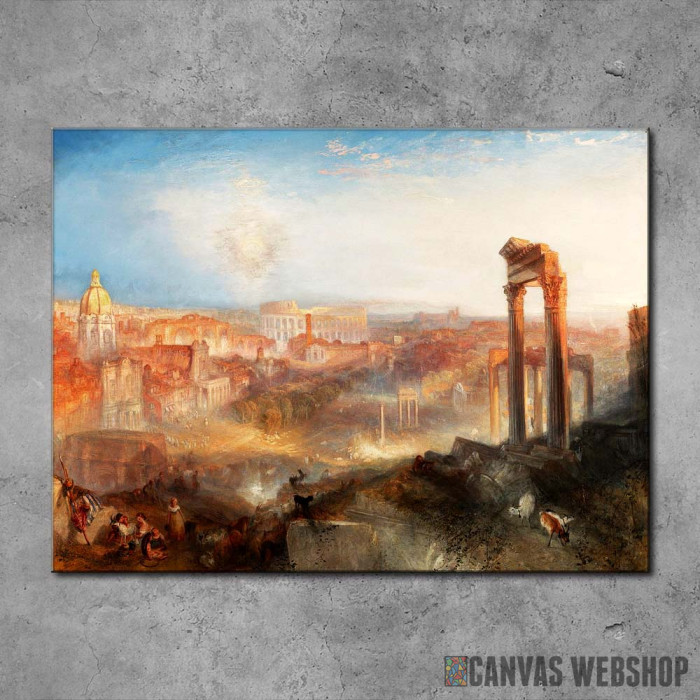 Moderni Rim – Campo Vaccino je slika odštampana na kvalitetnom pamučnom platnu koje je zategnuto na ram od bukovog drveta. Slika je dostupna u različitim dimenzijama.