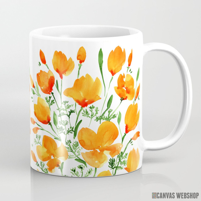 Keramička šolja sa slikom Vodene boje Kalifornijski mak.