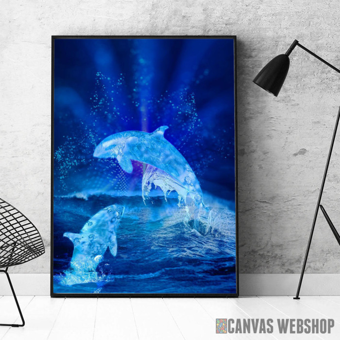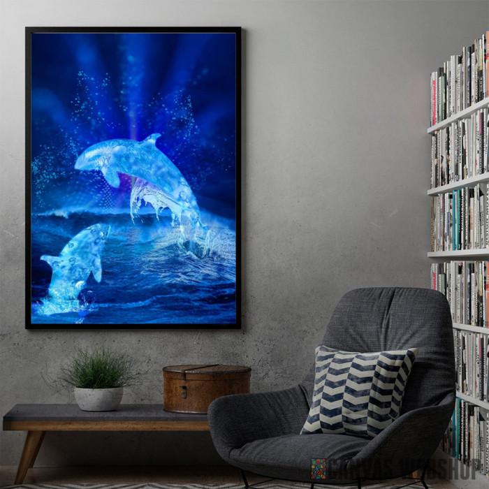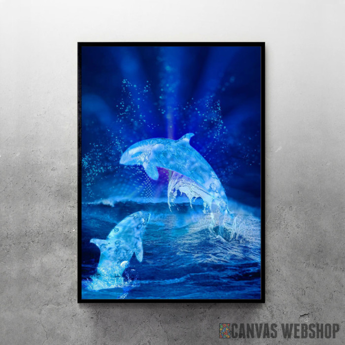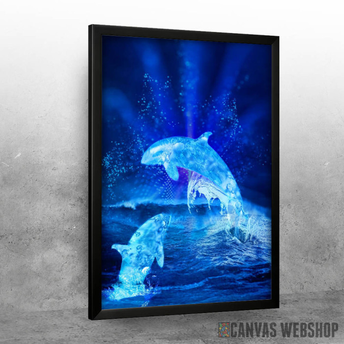 Water blue dolphins je poster odštampan na papiru koji uokviruje elegantan drveni ram sa staklom. Uramljeni poster je dostupan u različitim dimenzijama.