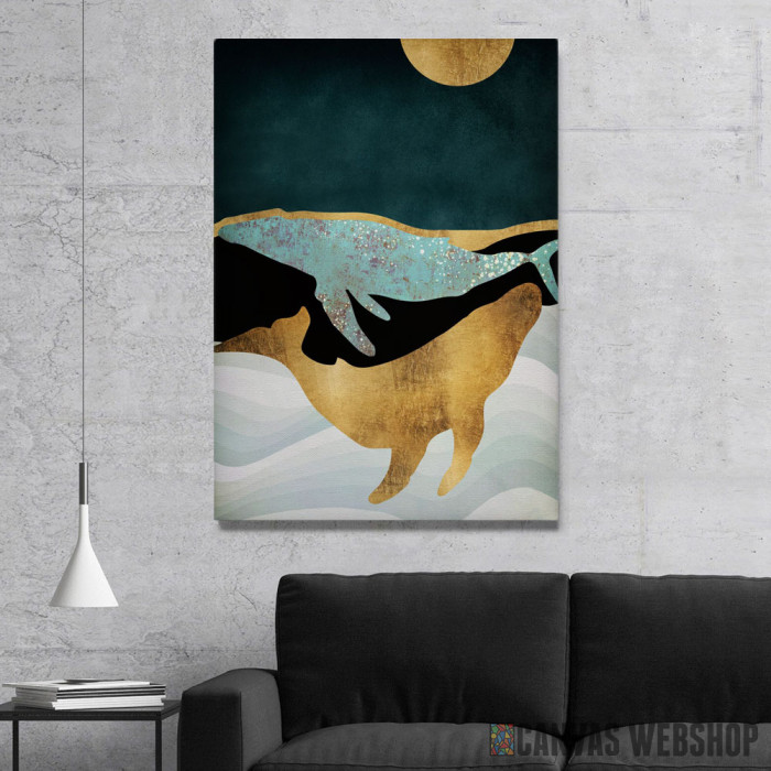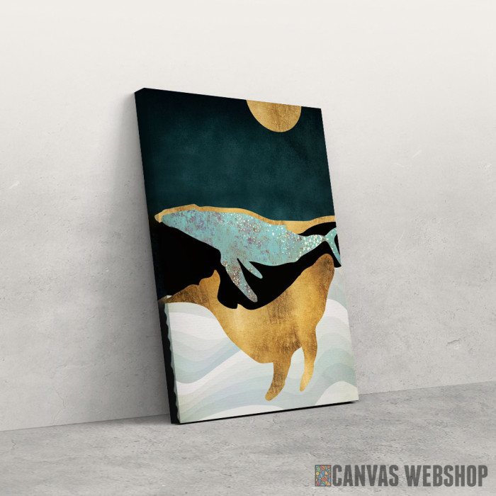 Whale Song je slika odštampana na kvalitetnom pamučnom platnu koje je zategnuto na ram od bukovog drveta. Slika Whale Song je dostupna u različitim dimenzijama.