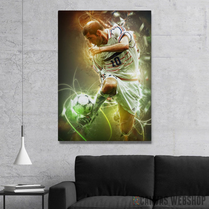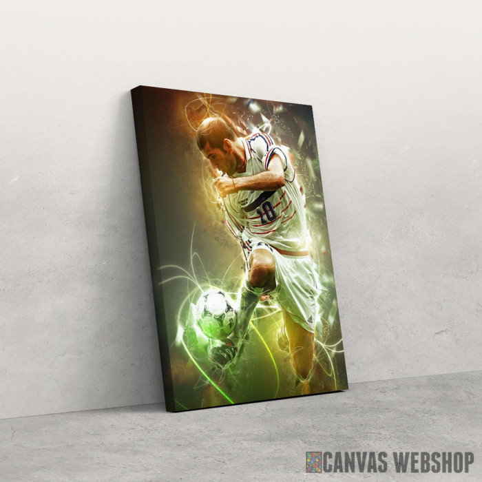 Zinedin Zidan je slika odštampana na kvalitetnom pamučnom platnu koje je zategnuto na ram od bukovog drveta. Slika Zinedin Zidan je dostupna u različitim dimenzijama.