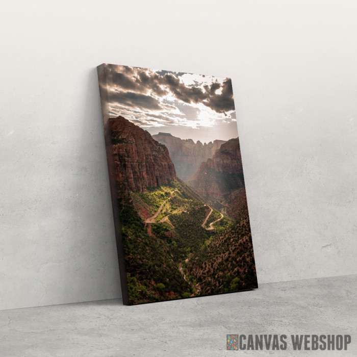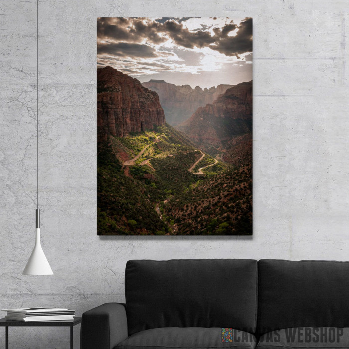 Zion je slika odštampana na kvalitetnom pamučnom platnu koje je zategnuto na ram od bukovog drveta. Slika Zion je dostupna u različitim dimenzijama.