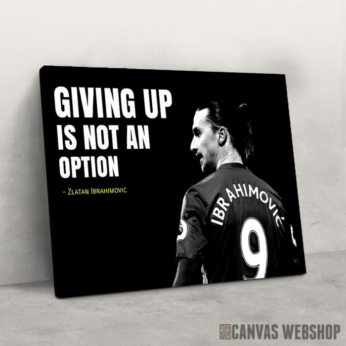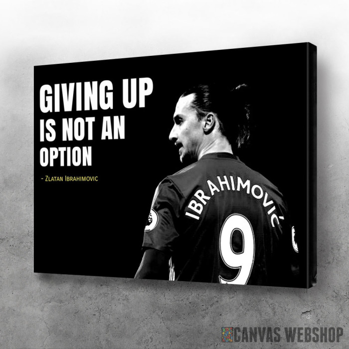 Zlatan Ibrahimovic - odustajanje nije opcija je slika odštampana na kvalitetnom pamučnom platnu koje je zategnuto na ram od bukovog drveta. Slika Zlatan Ibrahimovic - odustajanje nije opcija je dostupna u različitim dimenzijama.