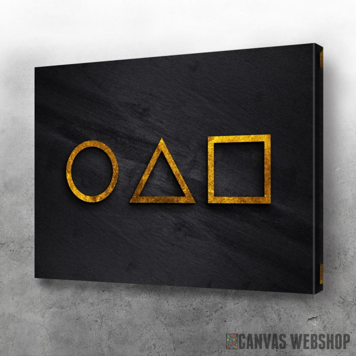 Znakovi Squid Game je slika odštampana na kvalitetnom pamučnom platnu koje je zategnuto na ram od bukovog drveta. Slika Znakovi Squid Game je dostupna u različitim dimenzijama.